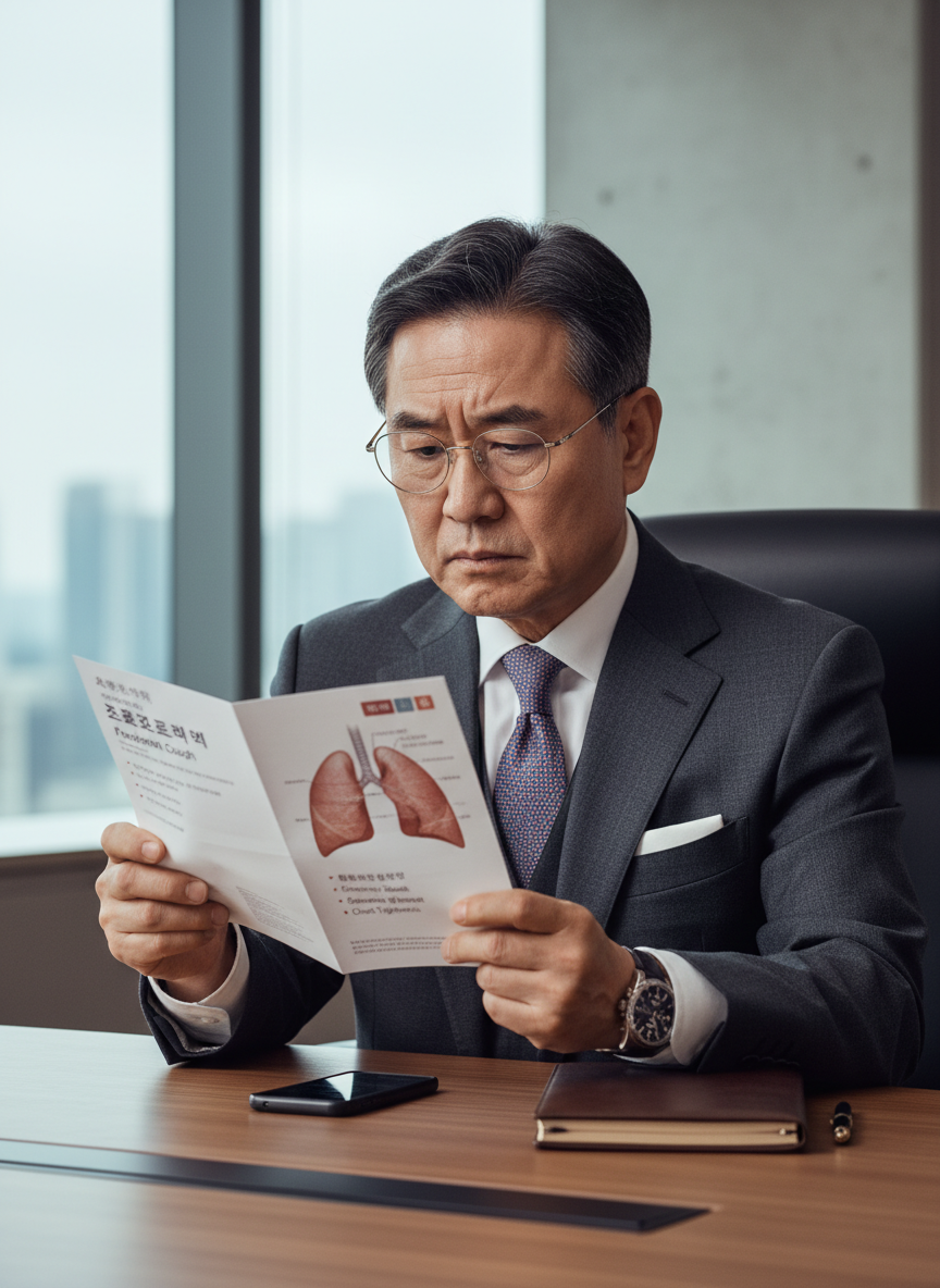 폐암의 경우, 초기에는 증상이 거의 없기로 유명합니다. 하지만 종양이 기관지를 침범하면 피가 섞인 가래가 배출될 수 있습니다. 특히 40대 이상이거나 장기간 흡연을 해오신 분들이라면, 아주 적은 양의 피라도 절대 가볍게 넘겨선 안 됩니다. 자동차 계기판에 엔진 경고등이 들어왔는데 "에이, 가다 보면 꺼지겠지" 하고 고속도로를 달리는 사람은 없겠죠? 객혈은 우리 몸이 보내는 가장 확실한 '엔진 경고등'입니다.