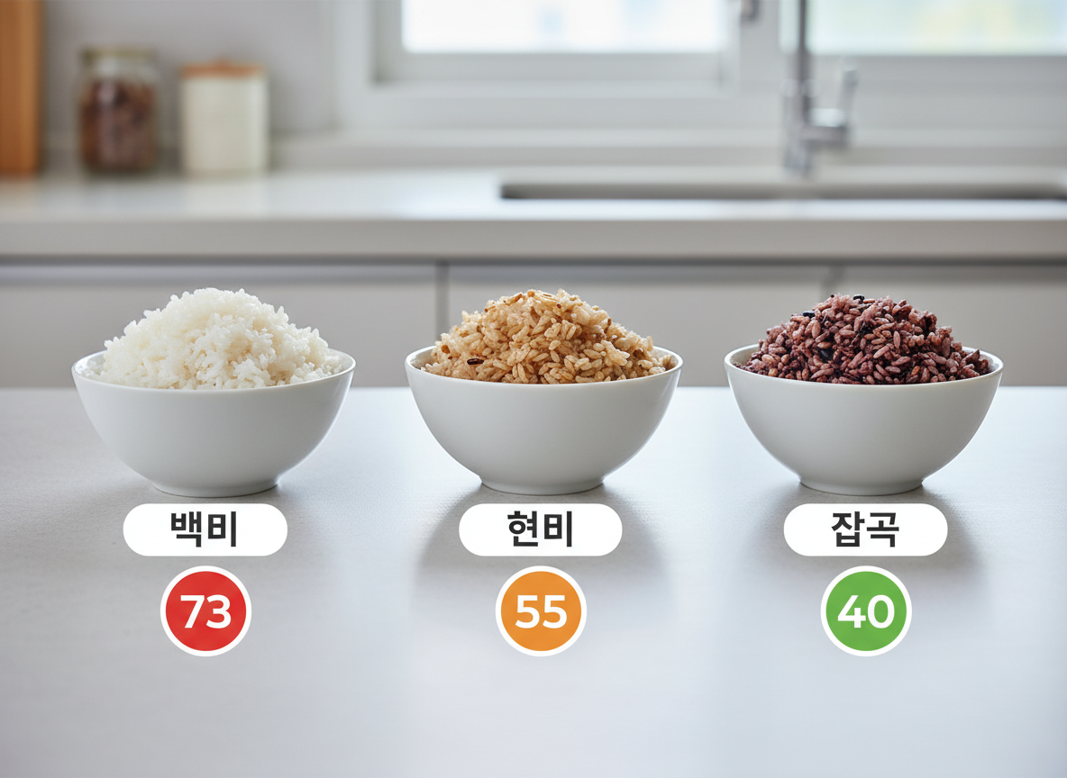 | 귀리/잡곡밥 | 50 이하 (낮음) | 베타글루칸 함유, 혈당 관리에 가장 유리함. |