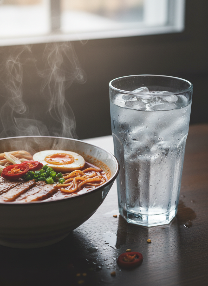 뜨거운 물을 마시다가 차가운 물을 마신다거나, 너무 맵고 자극적인 음식을 먹을 때도 딸꾹질이 나기 쉬워요. 이러한 온도나 자극 변화가 횡격막 신경에 영향을 주기 때문이죠.