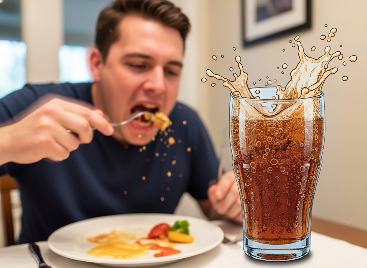 음식을 너무 빨리 먹거나 탄산음료를 많이 마시면 위가 급격하게 팽창하게 됩니다. 이때 위가 횡격막을 압박해서 딸꾹질을 유발할 수 있어요. 상상해보면 위가 갑자기 부풀어 오르면서 횡격막을 툭 건드리는 느낌일 것 같아요.