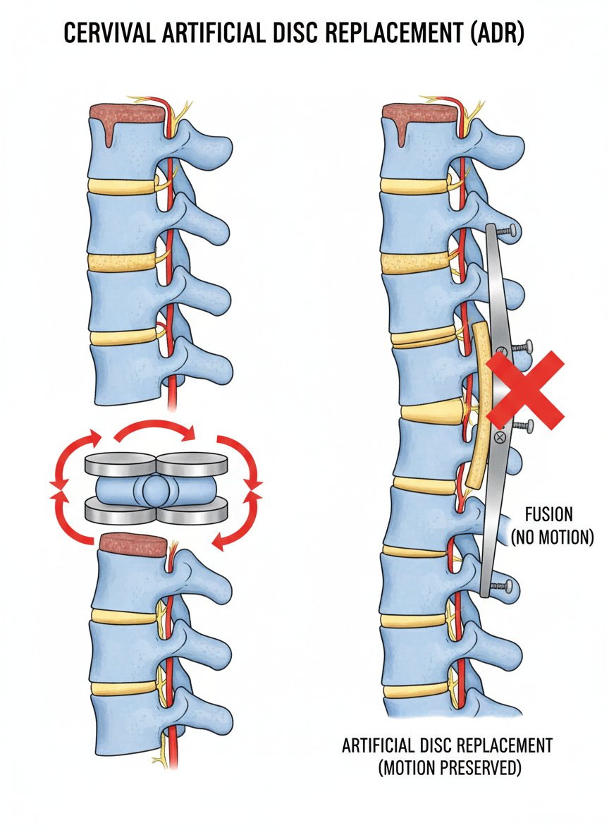- 인공디스크 치환술: 손상된 디스크를 제거하고 인공 디스크를 삽입하여 목의 움직임을 보존하는 방법.