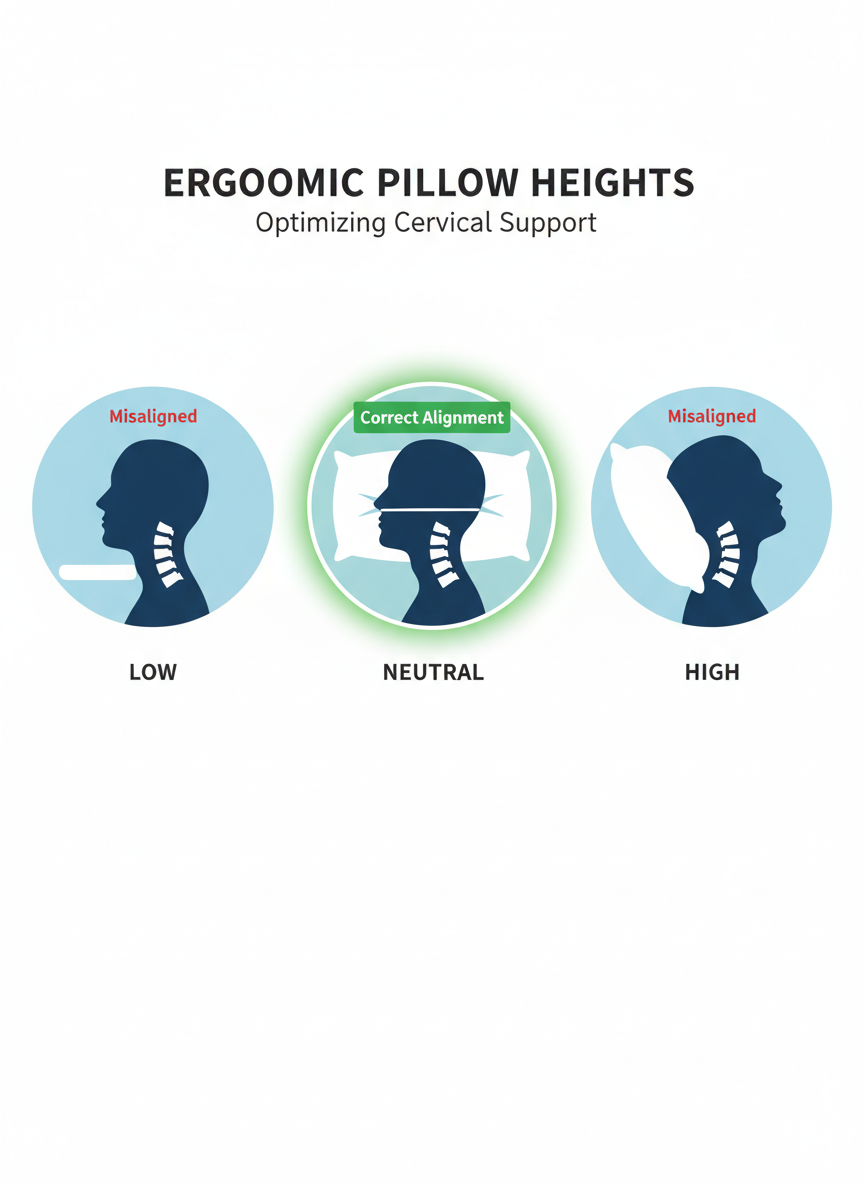 자는 동안에도 목을 편안하게 지지해 주는 베개가 중요해요. 너무 높거나 낮은 베개는 목에 부담을 줄 수 있습니다.