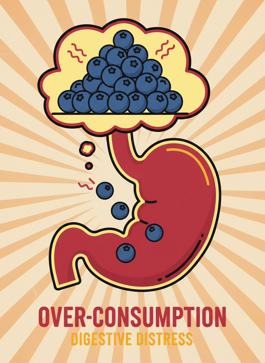 블루베리의 풍부한 식이섬유는 장 건강에 좋지만, 과하게 먹으면 복통, 설사, 가스 등 소화 문제를 일으킬 수 있어요. 장이 민감하다면 적정량을 지키는 것이 중요합니다.