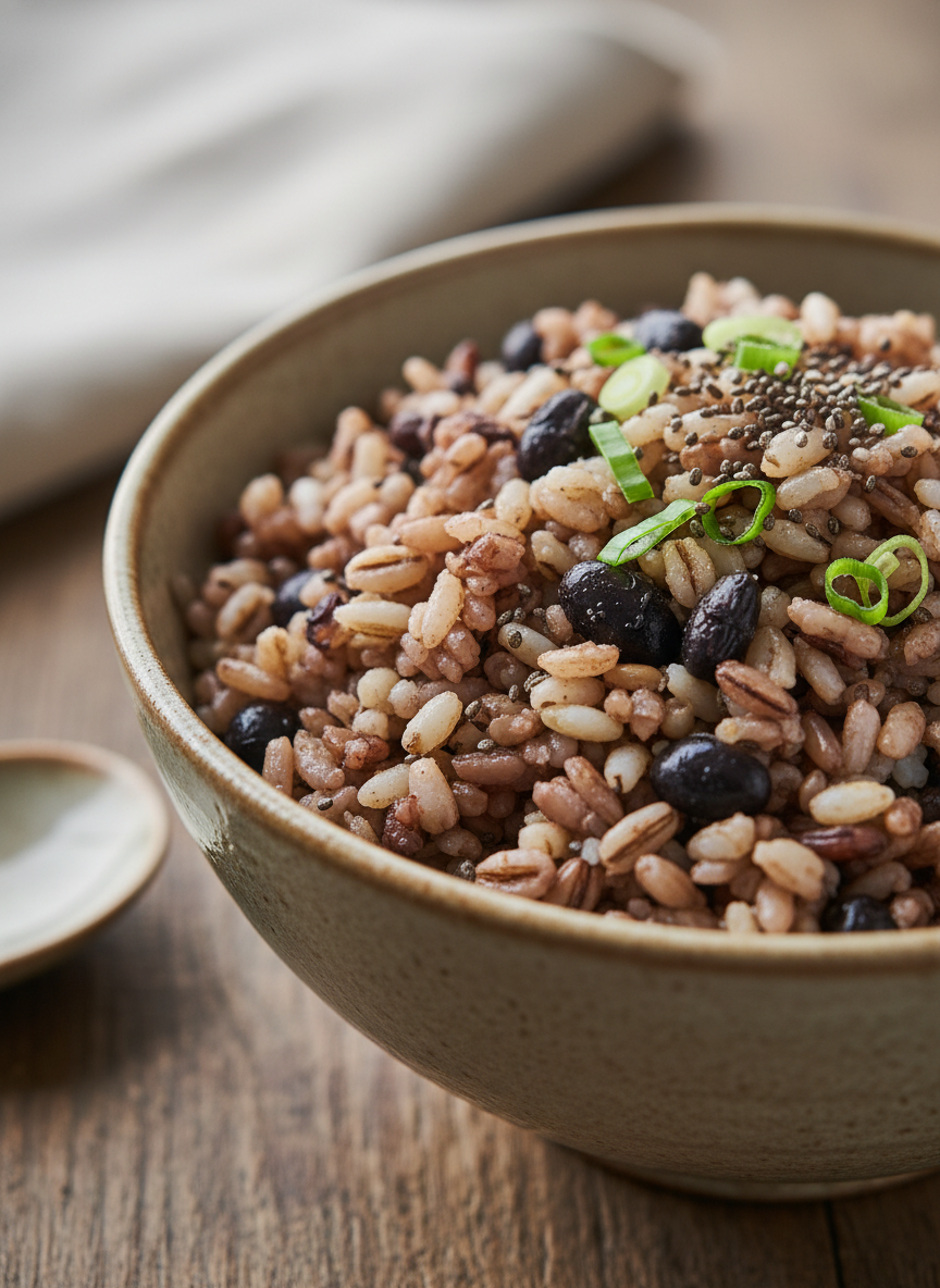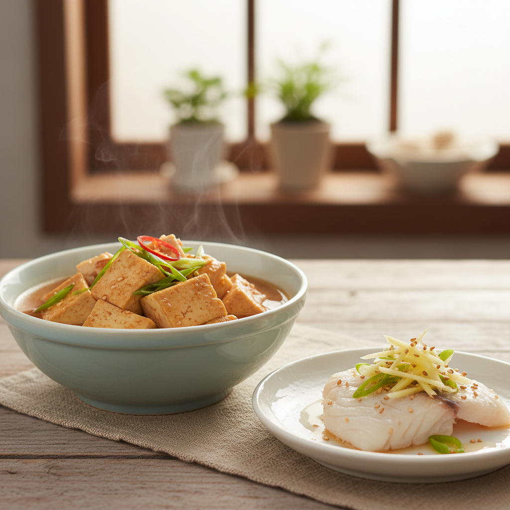 | 저녁 | 연어 구이, 잡곡밥, 두부조림, 해조류 무침 | 오메가-3, 단백질, 칼슘 |
