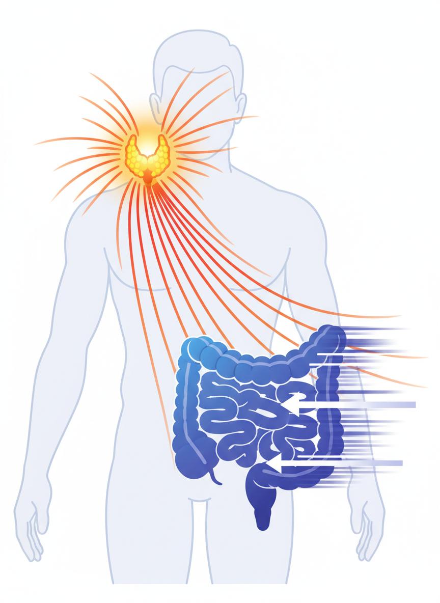 소화기관의 문제가 아닌데 설사를 한다? 다소 의아할 수 있지만, 호르몬은 우리 몸 전체의 대사 속도를 조절하는 지휘자입니다. 특히 갑상선 호르몬이 과다하게 분비되는 '갑상선 기능 항진증'이 생기면, 장의 운동 속도 또한 비정상적으로 빨라집니다. 음식물이 충분히 소화되고 수분이 흡수될 틈도 없이 배출되다 보니 잦은 설사를 하게 되는 것이죠. 잘 먹는데도 살이 빠지고, 더위를 참기 힘들며, 가슴이 두근거리는 증상과 함께 설사가 동반된다면 소화기 내과가 아닌 내분비 내과 검사가 필요할 수 있습니다.