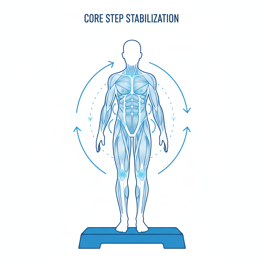스텝퍼 위에 서서 중심을 잡는 것만으로도 우리 몸은 끊임없이 미세한 근육들을 사용합니다. 발판을 번갈아 밟으며 좌우로 흔들리지 않기 위해 복부와 허리 주변의 코어 근육이 자연스럽게 개입하게 되는 것이죠. 만약 튜빙 밴드가 달린 제품을 사용하거나, 운동 중에 팔을 힘차게 흔들어준다면 복부의 긴장감은 더욱 높아집니다. 단순히 다리만 움직이는 것이 아니라, 몸의 중심축을 바로 세우는 전신 협응력을 길러준다는 점에서 매우 훌륭한 밸런스 운동이기도 합니다.