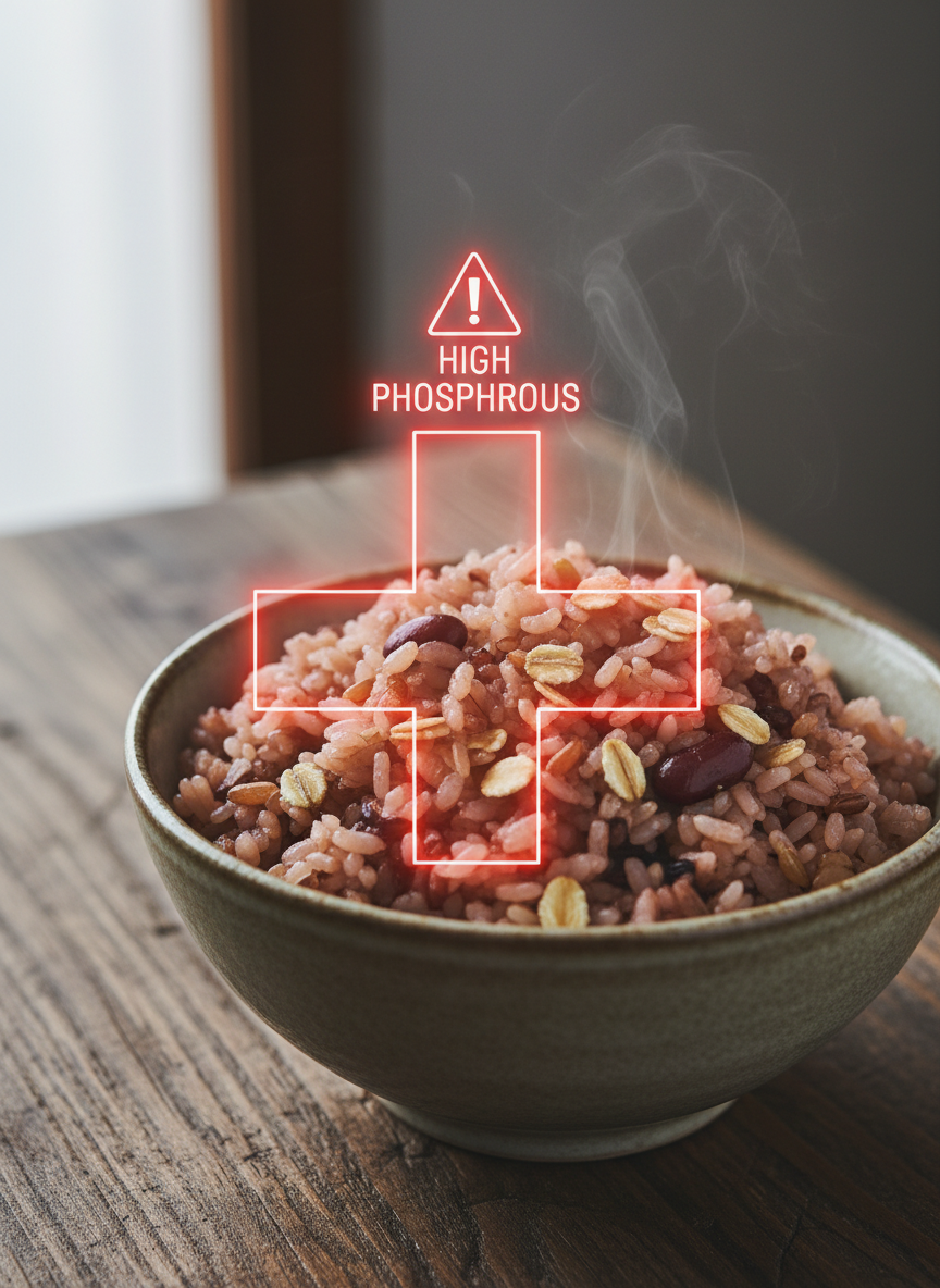 - 잡곡밥과 현미: 당뇨나 다이어트에는 좋지만, 인 함량이 높아 콩팥 기능이 약한 분들에게는 흰 쌀밥이 오히려 나을 수 있습니다.