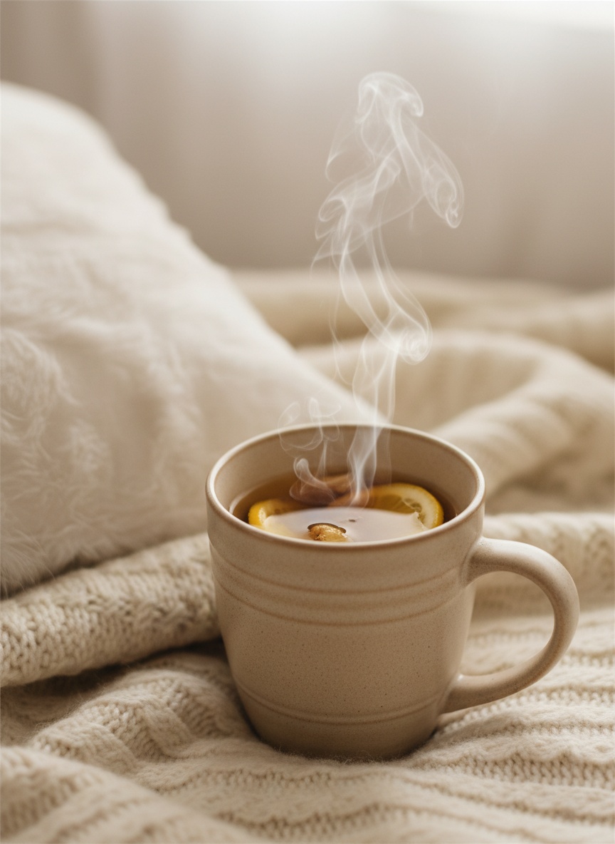 수분 섭취는 감기 증상 완화에 엄청난 영향을 줍니다. 따뜻한 물, 생강차, 유자차, 레몬차 등을 자주 마시면 목의 건조함을 막아주고, 코 안에 쌓인 끈끈한 점액을 묽게 만들어 배출을 돕습니다. 특히 코막힘이 심할 때 따뜻한 증기가 코 안을 촉촉하게 해줘서 일시적으로 시원해지는 느낌을 받을 수 있어요.
